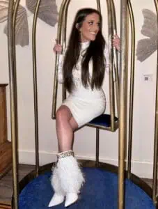 Crafted with meticulous attention to detail, “The Foxy” features sleek white leather that exudes sophistication and elegance. The supple leather hugs your feet and legs, providing a comfortable, secure fit that allows you to move confidently. But what genuinely sets these boots apart is the exquisite embellishments that adorn them.